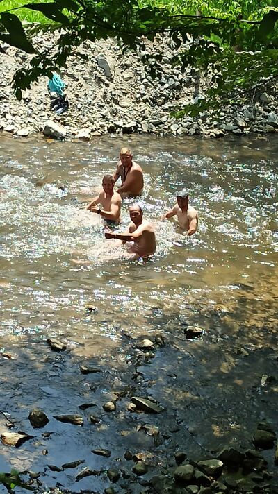 Boys in the natural jacuzzi