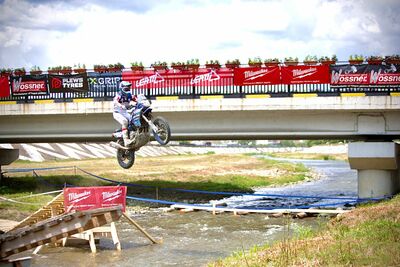Teeter-tottering and river jumping at the finish