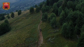 After some gnarly uphills the competitors came out of the forest on the top of the mountains and are pushing hard on the fast sections of the day.